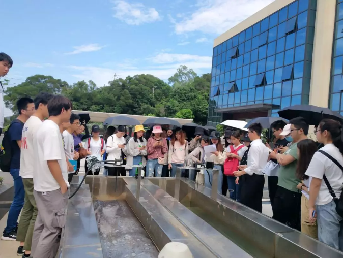 学生们先后参观了中控室、调节池、出水口和膜处理系统等现场。途中,为更好地让大家了解渗滤液处理的相关工艺,项目负责人详细介绍垃圾渗滤液产生、重点处理环节、进出水水质等情况。学生们就垃圾处理工程技术、渗滤液处理工艺等疑问与现场技术人员深入探讨,收获颇丰。