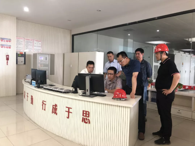 督查组一行在中控室检查在线监测数据