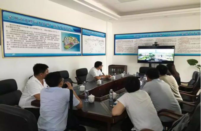 林晓枫一行观看了太阳成集团tyc7111企业宣传片,了解太阳成集团tyc7111企业概况,并对北峰污水处理厂做实地考察。北峰污水处理厂提标改造工程于去年10月竣工验收,是泉州市率先完成提标改造建设任务的污水处理厂。项目新增的高效沉淀池和反硝化深床滤池等设备,有效降低了污水中污染物的浓度,出水水质由一级B标准提升至地表水Ⅳ类水质标准。